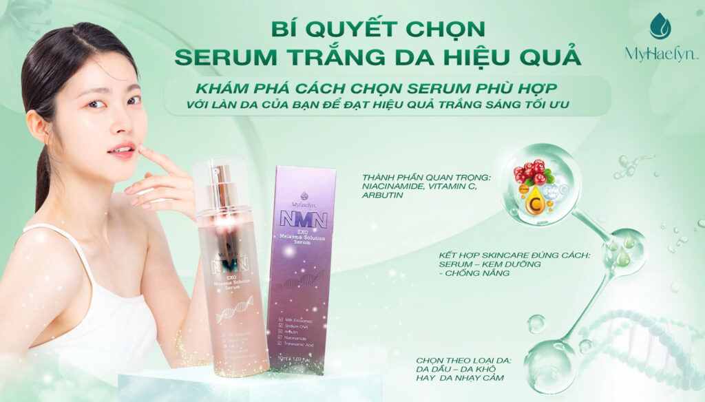 Lựa chọn serum dưỡng trắng da đúng cách sẽ giúp bạn có được làn da sáng khỏe, đều màu. Serum trắng da hàn quốc Myhaelyn NMN Exosome là một sản phẩm nổi bật với công thức tiên tiến, giúp dưỡng trắng, giảm thâm nám và phục hồi da hiệu quả. Hãy kiên trì sử dụng và kết hợp với quy trình chăm sóc da khoa học để đạt kết quả tốt nhất!
